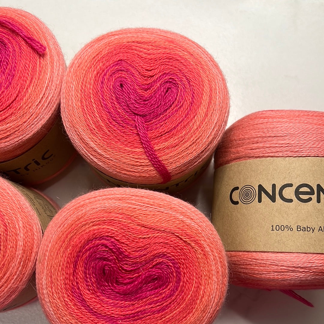 Named after the concentric circles that this cake of yarn so closely resembles, these color gradients were carefully designed. Concentric is made from four non-plied strands, which create the distinctive color change. This yarn is perfect for shawls and stunning in sweaters so don’t limit yourself to what Concentric can be used for!
