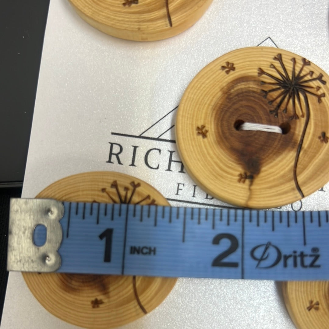 Wood burned dandelion 1 1/2 inch buttons.