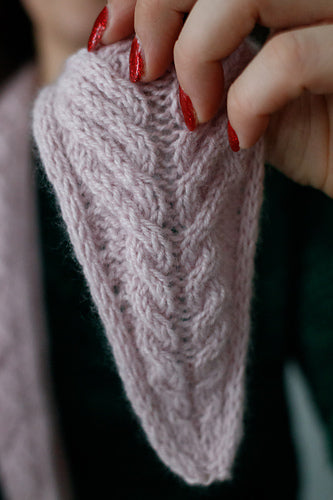 This is a true “just one more row” kind of project, as you become mesmerized watching the cables bend and weave into one another. A great little travel project and maybe even a gift for a loved one. It is worked flat from one short end to the other, full of easy-to-knit cables throughout which are all done on the right side of work.