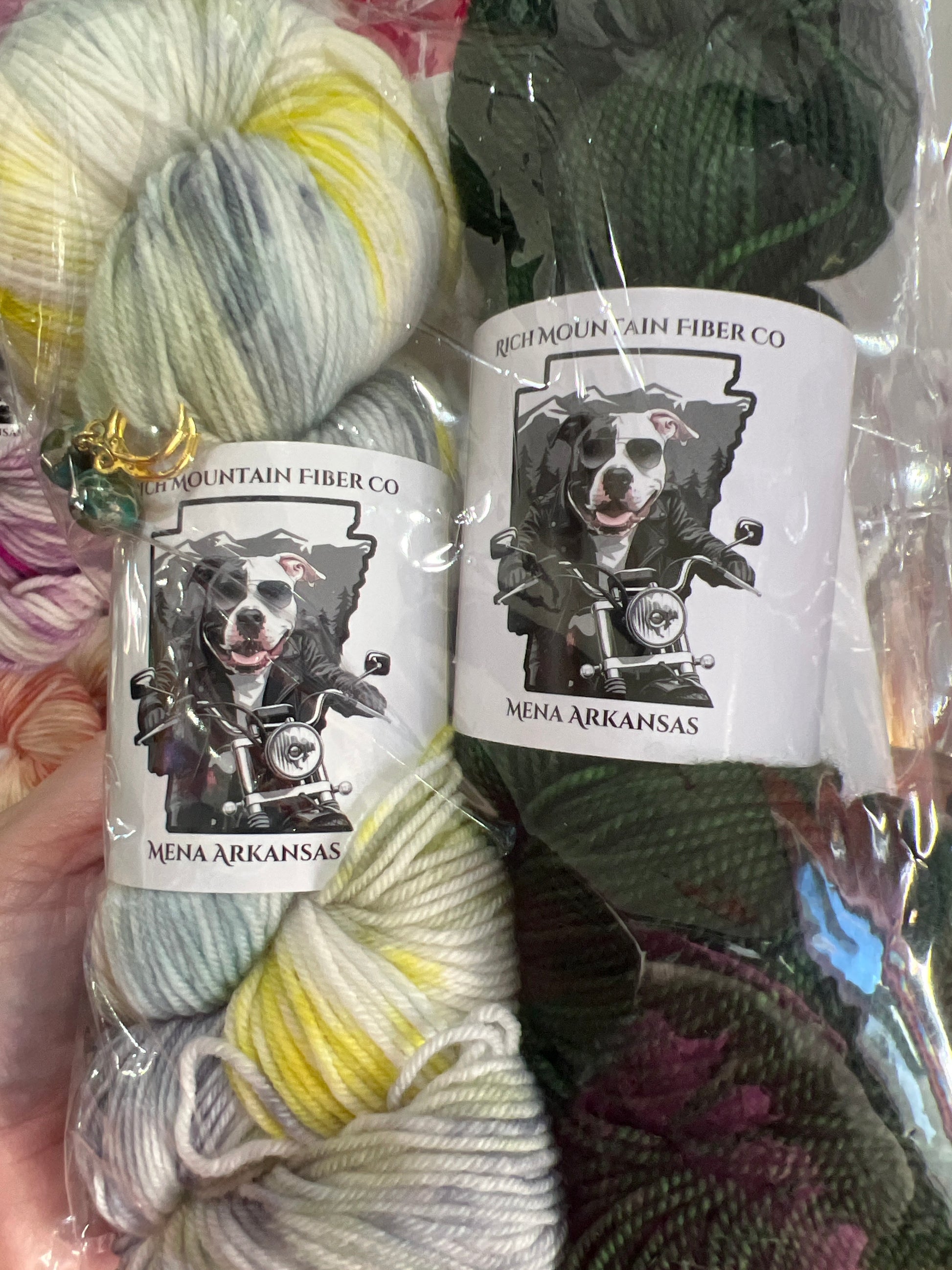 Kit includes 2 full skeins of yarn, 2 stitch markers, pattern